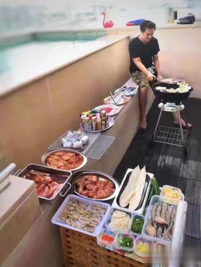 泳池另外一旁空间也很大平时一家人还会在阳台上进行烧烤,想想画面就很温馨,大家都知道把一个孩子养大是一件非常不容易的事情,但是陈浩民家有四个想想都头大。